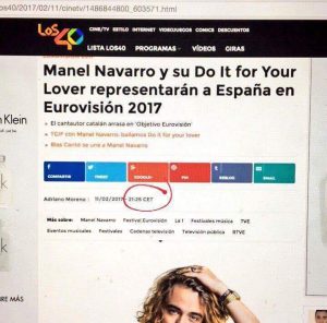 Es el momento de ver qué se dice por la red. Un pantallazo de la web de los 40 principales anunciando la victoria de Manel a las 21:26 (cuarenta minutos antes del inicio de la gala) circula por twitter, así como una foto de hace unas semanas del cantante con Xavi Martínez donde este le muestra su apoyo. En esa misma red social Nicky Triphook (participante del Eurocasting) muestra su disconformidad. El cantante mantiene una discusión con Gema Hurtado (compañera de Xavi Martínez) que ha salido en defensa del locutor que, según informan algunos medios, ha sido agredido en los pasillos.