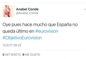 Anabel Conde (ESC 1995) insinúa que España quedará en último lugar y un vídeo con un «corte de mangas» de nuestro próximo representante al público durante la gala corre como la pólvora por internet. La polémica está servida, cada cual asuma sus responsabilidades.