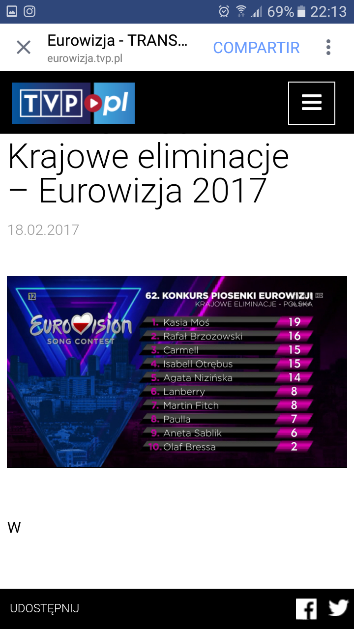 Esta noche se ha celebrado la final nacional de Polonia, en la que un total de diez candidatos se han batido en duelo para conseguir ser el próximo abanderado en Kiev en el mes de mayo.