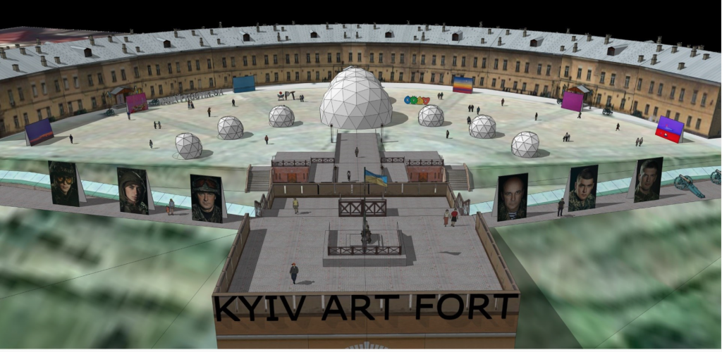 una exposición al aire libre de artistas contemporáneos ucranios. Varias carpas esféricas servirán de proyección hacia dentro y hacia afuera.