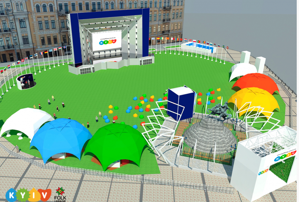 Junto a la Catedral de Sofia, cerca de Maidan, será la más vistosa de todas, tiene una capacidad de acoger hasta 10000 personas y representará una pequeña ciudad con pequeñas carpas de patrocinadores, restaurantes y actividades para acoger sobre todo a familias y turistas ya que su temática será la de promocionar el turismo en Kiev. Las banderas de todos los países y una decoración vegetal y floral por todas le dará mucho colorido – se cubrirán los 3500 metros cuadrados de pavimento con césped y se plantaran 10000 tulipanes holandeses – y habrá un gran escenario con una pantalla gigante que tendrá su propia programación musical con artistas locales, algunos de ellos conocidos para los eurofans: