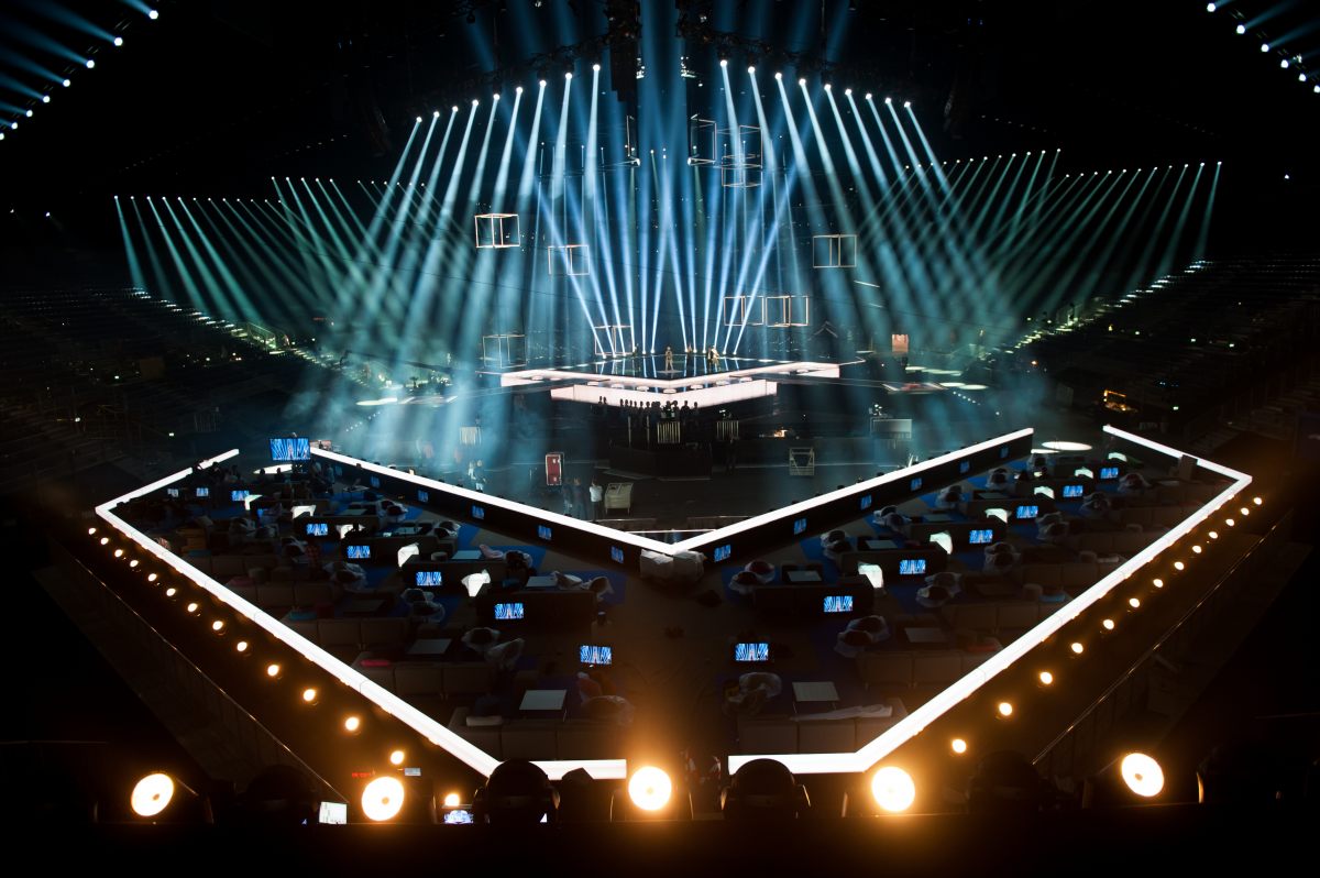 Una puesta un tanto oscura para los suizos, Sebalter sigue demostrando sus problemas de dicción y sale acompañado de su banda. El fondo de pantalla reproduce algo similar a una tormenta solar, un fondo que recuerda a las animaciones de los reproductores de música.