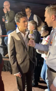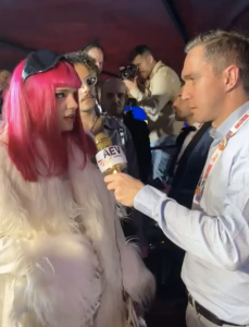 Rápidamente, RTVE improvisó un set en la tribuna superior del auditorio, en la que pudimos hablar con varios artistas invitados y participantes de este anhelado Benidorm Fest.
