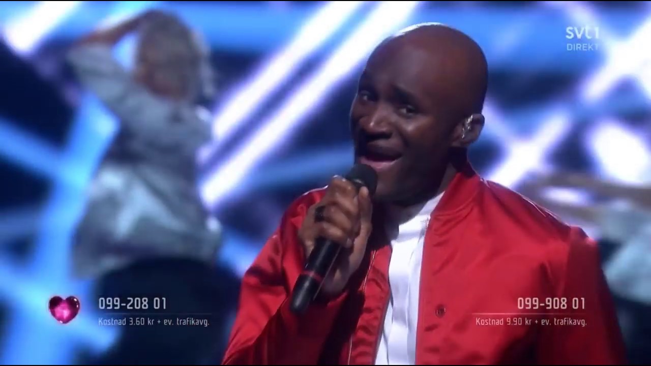 Benjamin (19) llegó, vio y venció en la semifinal por la que pasó en este Melodifestivalen. Su tema bailable, bien interpretado, bien coreografiado y con aire setentero resulta bastante bueno en conjunto. Esos toques disco y funky la distinguen de sus rivales y tanto Benjamin como el resto de bailarines saben cómo moverse encima del escenario. Si bien el resultado general no desmerece, la llegada del tema de Robin, similar en su idea y con mucha coreografía como base de la presentación parece haberle restado interés y originalidad, sobre todo cuando al hijo de la mítica reina del schlager Pernilla Wahlgren parece faltarle un poco de experiencia aún si se le compara con otros rivales. Aún sin un previsible triunfo final, es casi seguro que el de Benjamin puede ser un rostro familiar en los futuros Melodifestivalen.
