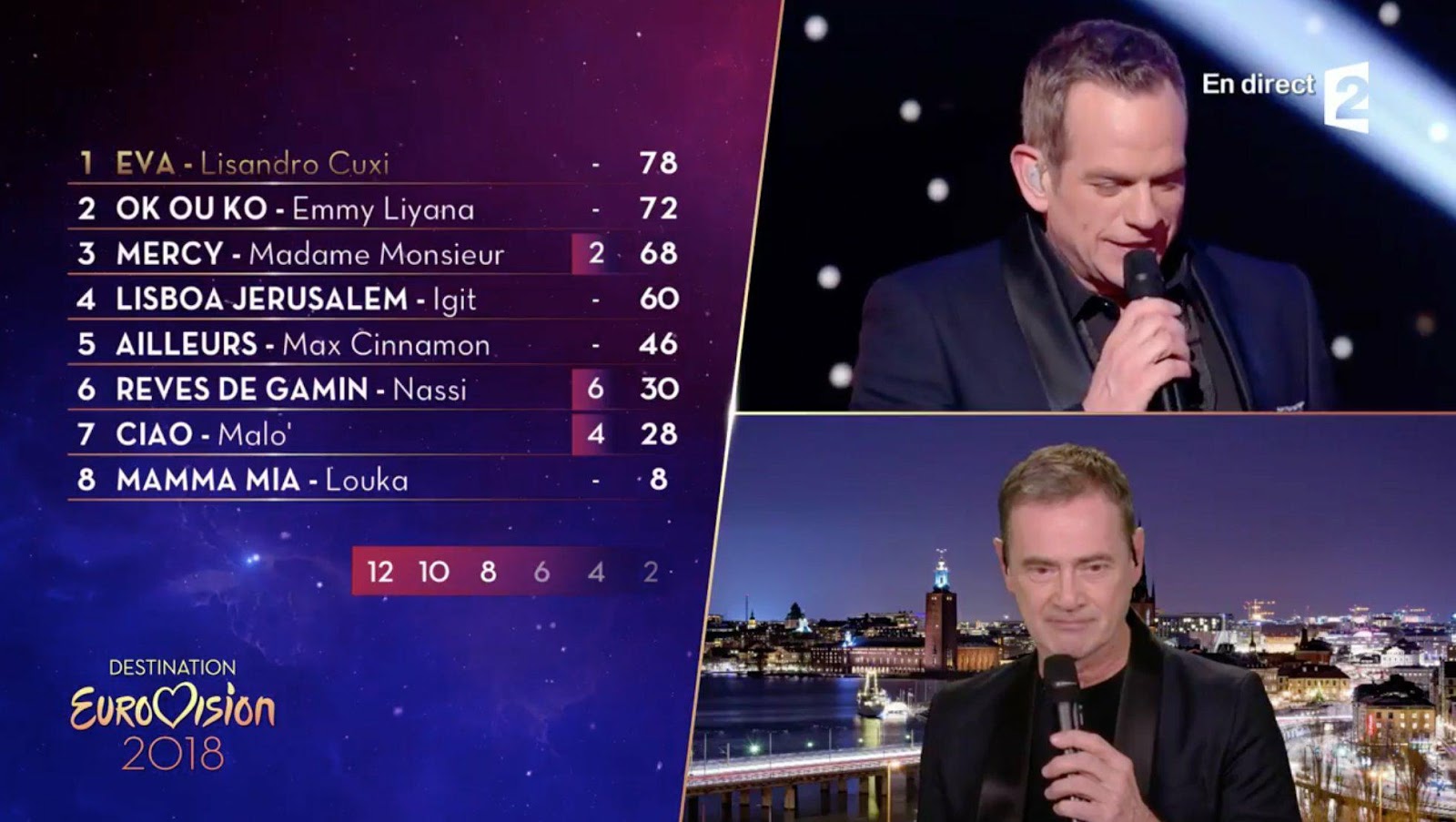 Como muchos pronosticaban, el dúo Madame Monsieur serán los abanderados de Francia en Eurovisión 2018. Sin embargo, lo que muchos no se esperaban es ese acentuado divorcio entre televoto y jurado. El jurado internacional se decantó por Lisandro y su «Eva», mientras que el público se ha impuesto con «Merci».