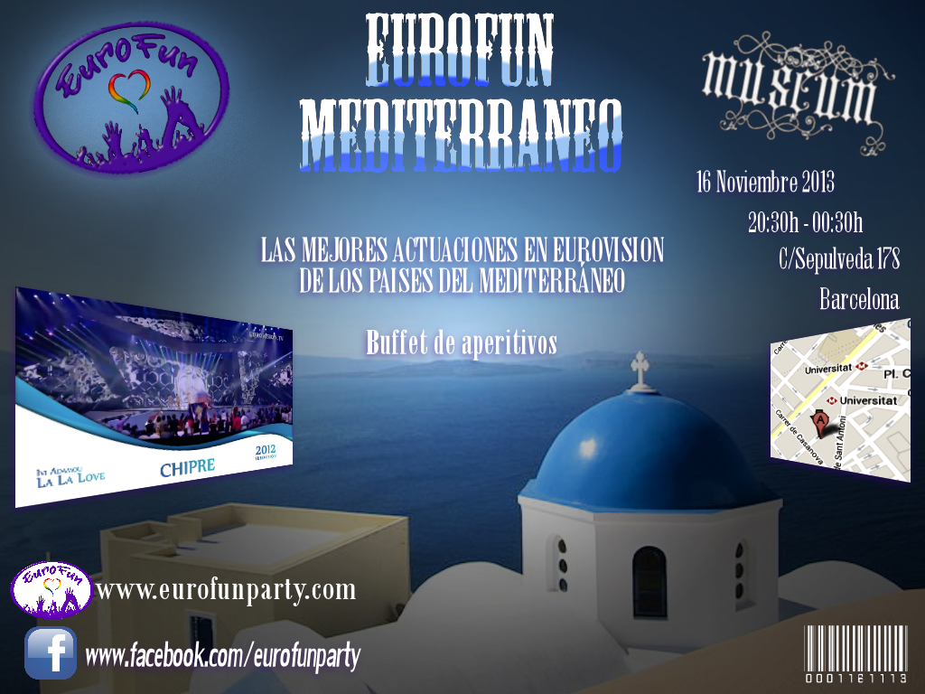 La fiesta tendrá lugar en el Pub Museum, calle Sepúlveda 178, de 20.30h a 00.30h. Cuatro horas en formato audiovisual de las mejores representaciones de los países del Mediterráneo en el festival de Eurovisión, con entrada gratuita.